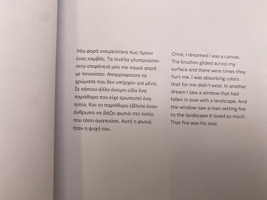 Ο ιδιαίτερος τρόπος που τον προσεγγίζουν οι άνθρωποι στις εκθέσεις του. Υπάρχει ένας σεβασμός και μια χαρά. Δηλαδή μπαίνοντας στην έκθεση και ενώ περιγράφει τις φωτιές, την εποχή του covid με τις μάσκες, η έκθεση αποπνέει αισιοδοξία.